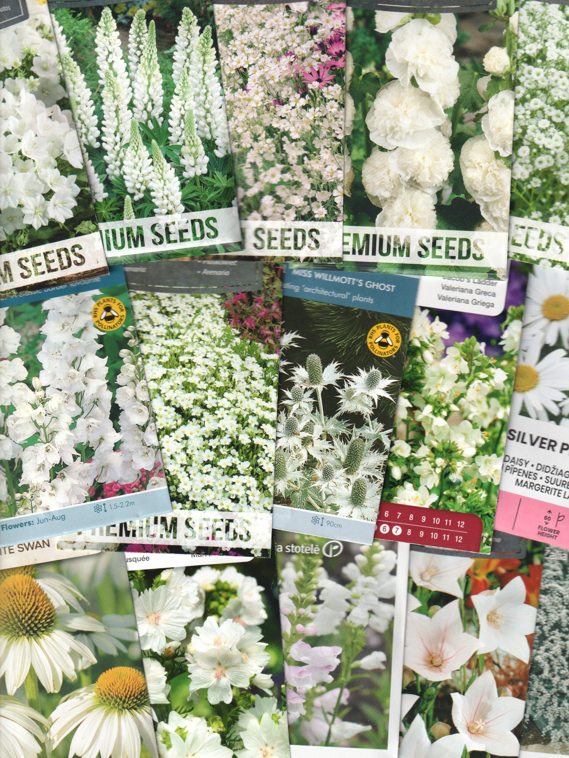 Kinkekomplekt valge püsikupeenra rajamiseks -15 pakki valgeõieliste püsilillede seemneid ja kinkekott!