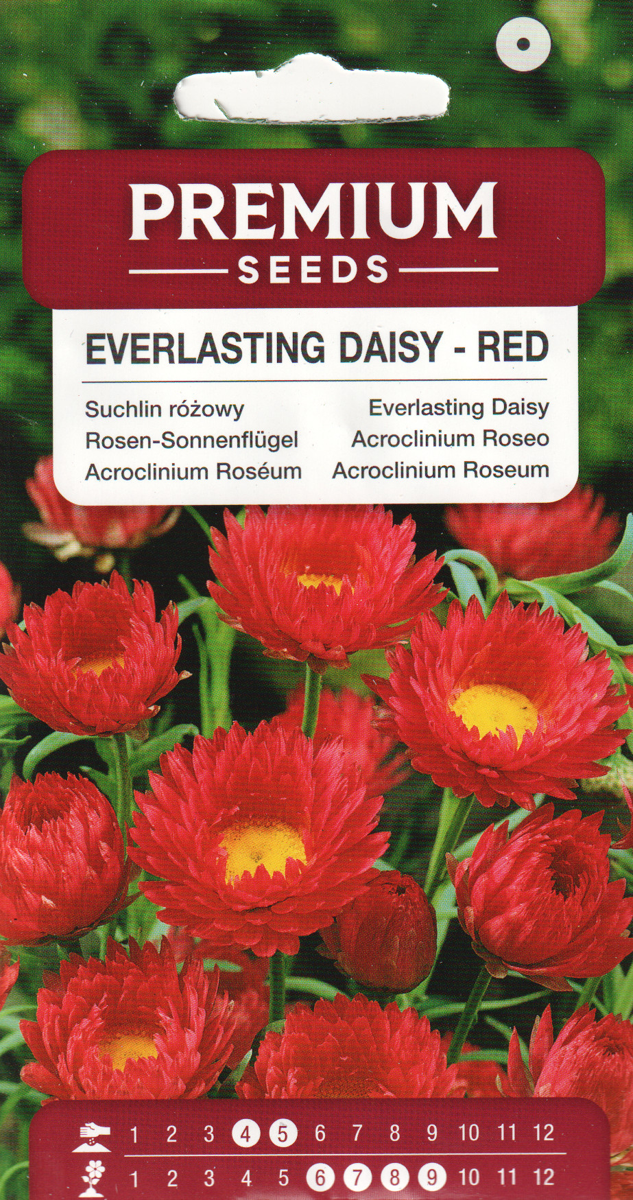 Üheaastane suvelill, taime kõrgus kuni 50cm. Õied punased, kollase südamikuga. Suurepärane lill kuivatamiseks ja talvistesse kuivkompositsioonidesse. Värvus ei kao ka kuivades. Kuivatamiseks korja õied, mis ei ole lõplikult avanenud. Õitseb juulist külmadeni.